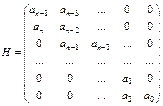 Если элемент первого столбца меньше либо равен нулю, то это означает, что система неустойчива; если больше нуля, то таблица строиться дальше: по второй и третьей строкам строится аналогично четвёртая и т.д. Построение продолжается до тех пор, пока либо в первом столбце появиться элемент меньше или равный нулю, тогда система не устойчива, либо будет построена (n+ 1)-я строка и все элементы первого столбца таблицы окажутся положительными, что является необходимым и достаточным условием устойчивости системы. Критерий Гурвица также относится к алгебраическим критериям определения устойчивости. Он основан на построении и анализе матрицы Гурвица 1) по главной диагонали матрицы снизу вверх выписывается последовательно n коэффициентов характеристического уравнения от а1 до аn; 2) столбцы матрицы образуются из коэффициентов характеристического уравнения, записанных вверх от главной диагонали в порядке возрастания индексов, а вниз – в порядке их убывания; 3) если индекс коэффициента становится меньше нуля или больше n, то на место такого коэффициента становится ноль.