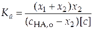 Из уравнения (38) следует, что для определения константы ионизации слабой кислоты необходимо измерить концентрацию ионов гидроксония и рассчитать плотность глубины второй реакции. Как было показано ранее в уравнении (24),