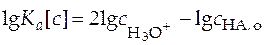 Уравнение (28) линейно в координатах рН − логарифм концентрации кислоты. Свободный член этого уравнения связан с константой ионизации. При экспериментальном определении величины константы ионизации методом рН-метрии необходимо представить экспериментальные данные в виде графической зависимости