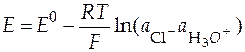 Давление в водородном электроде равно 1 атм, следовательно уравнение (30) переходит к виду: