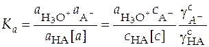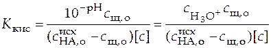 Затем вычисляют концентрации аниона и нейтральной формы кислоты по формулам: