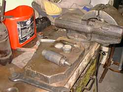В первую очередь следует проверить биение наружных центров цапф. Допустимое биение 0.02 мм на расстоянии 1, 5…2, 0 мм от края цапфы. Уменьшить биение можно снятием части металла с центрирующей фаски в точке наибольшего отклонения стрелки индикатора с помощью небольшого абразивного бруска заточенного под углом 60 градусов на длине 15…20 мм. Для этой операции используется биениемер. Верхние бронзовые втулки и шатунные пальцы можно сразу выбросить, так как они в любом случае ремонту не подлежат. На внутренней образующей нижних головок шатунов не должно быть видимых раковин, а тем более трещин. Обмеры нижних головок шатунов проводятся нутромером настроенным по концевым мерам на размер 50 мм (именно таков номинальный диаметр отверстия шатунов М-72, К-750, " Урал").Отверстия хорошо поработавших шатунов, как правило, овальные, причём большая ось овала лежит вдоль оси стержня шатуна. Разжимной притир с притирочной пастой позволяет в гаражных условиях достаточно легко устранить все дефекты геометрии. Притир разжимается с таким расчётом,
