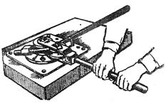 затем металлическим молотком внизу у губок под углом 90°.