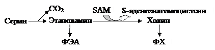 (ФЭА – фосфатидилэтаноламин, ФХ – фосфатидилхолин, SАM – S-аденозилметионин) Из близких по строению серину аминокислот (ала, гли) легко продуцируется глицерин – облигатный компонент и нейтральных жиров, и глицерофосфатидов. Глицин, входя в состав парных желчных кислот, способствует перевариванию липидов и всасыванию продуктов их распада. Сульфгидрильная группа серосодержащих аминокислот (цистеина, метионина) окисляется и возникшие сульфаты включаются в созревающие молекулы сульфолипидов глюкозаминогликанов (дерматан-, гепаран-, хондроитин-сульфатов) компонентов различных видов соединительной ткани; мало того из цистеина после окисления может получиться таурин, - а о роли парных таурохолевых желчных кислот уже писалось выше. Большое значение для нормального хода липидного метаболизма имеет глутатион – трипептид, содержащий цис, гли, глу. Это один из важнейших участников антирадикальной системы – борец со свободными радикалами, провоцирующими перекисное окисление ПНЖК, холестерина, нуклеотидов. Продукт декарбоксилирования цистеина - тиоэтиламин – встроен в молекулу НS-КоА – кофермента, без которого невозможно преобразование (синтез и распад) жирных кислот. Завершить описание взаимоотношений азотсодержащих структур с другими классами соединений необходимо, тем, что многие биологические вещества (гормоны, нейротрансмиттеры), регулирующие метаболизм и углеводов, и липидов, синтезируются из аминокислот (тироидные гормоны, катехоламины, СТГ, глюкагон, инсулин, ацетилхолин и т.д.). С другой стороны, гормоны – производные липидов (кортикостероиды, ИФ3, ДАГ, простагландины и т.д.) изменяют скорости процессов, составляющих основу обменов белков, нуклеотидов, углеводов.