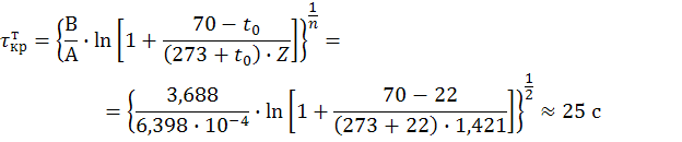 5. Определяем значение критической продолжительности пожара 5.1. По повышенной температуре: