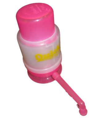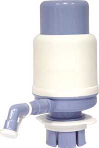 Помпа работает по принципу механического насоса. Воду дает порционно при каждом нажатии. Применяется для бутылей емкостью 19 и 13 литров. Высота 23 см.