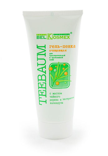 Специальная маска, удаляющая с кожи поверхностные загрязнения и освобождающая поры. Зеленая глина - идеальное средство для глубокой чистки лица и борьбы со всеми видами угрей. Она уменьшает салоотделение, сужает поры, тонизирует кожу, придавая ей гладкость и упругость. Эфирное масло чайного дерева действует как антисептик, предотвращает распространение воспалений, уменьшает проявление угревой сыпи. Экстракт алоэ вера успокаивает и способствует регенерации кожи, обеспечивает ей дополнительное питание и восстановление защитного барьера, оказывает заживляющее и увлажняющее действие. Гель-пенка очищающая для чувствительной и проблемной кожи с маслом чайного дерева и экстрактом календулы Teebaum 14+ 80 г. цена 100 руб.