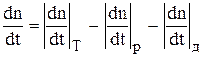 де c – ступінь іонізації, що визначається як відношення кількості іонізованих частинок до повної кількості атомів у даному об’ємі, р – абсолютний тиск газу; Т – абсолютна температура; Ui – потенціал іонізації. Аналіз (1) показує, що чим більший тиск, тим нижче ступінь іонізації. У зв’язку з цим в багатьох дугогасильних пристроях створюється підвищений тиск газу, що сприяє гасінню дуги. Дуже сильний вплив на іонізацію має температура. Для великого числа двохатомних газів через ступеневу іонізацію процес утворення іонів починається при температурі 6 103 К. пари метала іонізуються значно легше. Помітна іонізація починається вже при температурах 3000-4000 К. у зв’язку з цим в дугогасильних пристроях необхідно застосовувати заходи, що перешкоджають попаданню металічних парів електродів у стовп дуги (зменшення перерізу плавких вставок запобіжників, переміщення дуги по електродах, зменшення температури електродів, а значить їх випаровування, та ряд інших засобів). Оскільки ступінь іонізації визначається температурою, у всіх дугогасильних пристроях намагаються відводити тепло від дуги або за рахунок охолодження рухомим повітрям або газом (повітряні, масляні вимикачі), або віддачею тепла стінкам дугогасильної камери. у дуговому стовпі поряд з іонізацією протікає процес деіонізації за рахунок рекомбінації і дифузії. Рекомбінація – це нейтралізація частинок за рахунок з’єднання іонів із зарядами різних знаків. Як показали дослідження, в дуговому стовпі рекомбінація електрона і позитивно зарядженого іона внаслідок великої різниці в їх масах малоймовірна. Очевидно, що чим більше зарядів в одиниці об’єму, тим сильнішою буде рекомбінація. Зменшення числа зарядів в одиниці об’єму за рахунок рекомбінації можна знайти за допомогою рівняння.