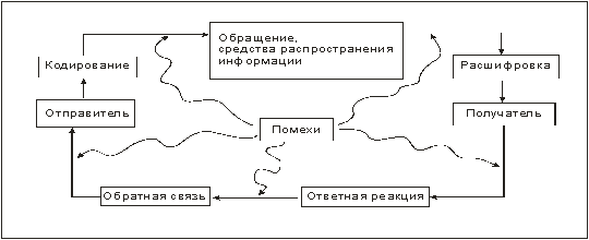 Необходимо разбираться в том, как действует коммуникация. Процесс этот включает в себя девять составляющих элементов, показанных на модели в рис. 2. Два первых элемента ¾ основные участники коммуникации, т.е. отправитель и получатель. Два следующих ¾ основные орудия коммуникации, т.е. обращение и средства распространения информации. Четыре элемента являются основными функциональными составляющими: кодирование, расшифровка, ответная реакция и обратная связь. Последний элемент ¾ случайные помехи в системе. Отправитель ¾ сторона, посылающая обращение другой стороне. Получатель ¾ сторона, получающая обращение, переданное другой стороной. Обращение ¾ наборсимволов, передаваемых отправителем. Кодирование ¾ процесспредставления мысли в символической форме. Расшифровка ¾ процесс, в ходе которого получатель придает значение символам, переданным отправителем. Средства распространения информации ¾ каналы коммуникации, по которым обращение передается от отправителя к получателю. Ответная реакция ¾ набор откликов получателя, возникших в результате контакта с обращением. Обратная связь ¾ частьответной реакции, которую получатель доводит до сведения отправителя.