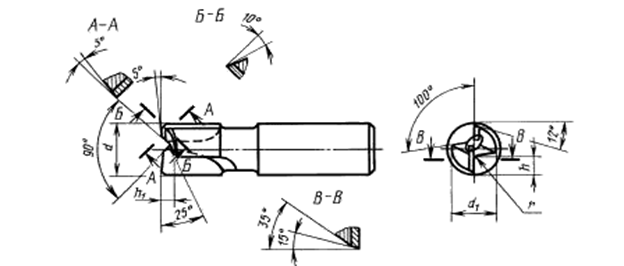 Технічні вимоги на іструмент. 1.Шпонкові фрези повинні виготовлятися згідно вимог ГОСТ 6396-78. 2.Ріжуча частина повинна оснащуватися твердосплавними пластинками марок ВК8, ВК6М, Т5К10, Т15К6 по ГОС Т3882. 3.Корпус фрези повинен бути виготовленний зі стале марок 40Х, 45Х по ГОСТ 4543. 4.Твердість циліндричного хвостовика повинна бути 37…57HRC. 5. В якості припою використовується латунь марки Л63, Л68 ГОСТ 15527. Або припой марки ЛП-ДЦ80лПИ-8-1 6.Товщина слою припою повинна бути не більше: -0.15 для припою марки Л63, Л68. -0.3 для припою марки ЛП-ДЦ80лПИ-8-1 7.Параметри шорсткості фрези по ГОСТ 2789
