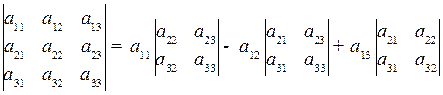Рис. 1.15. Вычисление определителя Квадратная матрица называется вырожденной, если ее определитель равен нулю. Разложение определителя по первой сторке. Для вычисления определителя третьего порядка удобно пользоваться следующей формулой разложения: