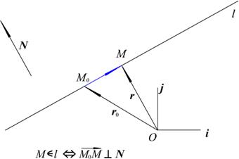 Уравнение (1) называется общим уравнение прямой на плоскости. Уравнение (1) можно записать в векторном виде: