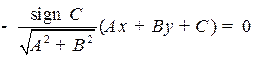 Рис. 2.6. Нормальное (нормированное) уравнение прямой Slide_2_6 «Нормальное уравнение прямой» n = Slide_2_6_1 «Нормировка уравнения прямой» Пример. Пронормировать уравнение прямой Модуль вектора нормали (3, 4) равен 5. Делим уравнение прямой на 5 и берем знак противоположный знаку свободного коеффициента 25, получим нормальное уравнение прямой: С помощью нормального уравнения прямой определяют расстояние от точек до прямых, именно: Расстояние от точки