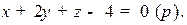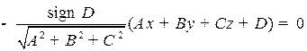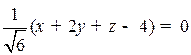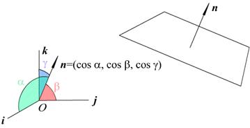 Рис. 2.7. Нормальное уравнение плоскости (через направляющие косинусы нормали) n = Пример. Пронормировать уравнение прямой Модуль вектора нормали (1, 2, 1) равен С помощью нормального уравнения плоскости определяют расстояние от точек до плоскостей, именно: Расстояние от точки