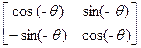 Введем следующие обозначения: r – радиус поворота. Отрезок ОР, соединяющий начало координат О с поворачиваемой точкой Р; l - угол между осью x и начальным положением отрезка ОР; q - угол, на который выполняется поворот. Определим начальное положение точки Р и ее положение после поворота Р’. Р = [x y] = [r cos l r sin l] (1) Р’ = [x’ y’] = [r cos(q+l) r sin(q+l)] Применив формулы косинуса и синуса суммы, получим: Р’ = [x’ y’] = [r(cos q cosl - sin q sinl) r(sin q cos l+ cos q sin l)] Раскрывая скобки и учитывая формулу (1), получаем: Р’ = [x’ y’] = [(xcos q - y sin q) (x sin q + y cos q)] т.е. точка после поворота имеет координаты x’ = x cos q - y sin q y’ = x sin q + y cos q Переходя к матричному представлению, получаем матрицу преобразования поворота на произвольный угол q относительно начала координат: R = Для обращения преобразования необходимо выполнить поворот в противоположную сторону на тот же угол. R-1 =