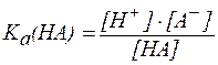В присутствии второго компонента буферного раствора – сильного электролита – равновесие диссоциации слабой кислоты НA, согласно принципу Ле Шателье, смещено влево. Поэтому можно считать, что концентрация недиссоциированных молекул НA практически равна концентрации кислоты в буферном растворе, а концентрация ионов A- равна концентрации соли. В таком случае можно записать: