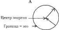 Волны интенсивного возбуждения преодолевают сильные границы потоком чувств = ра-дос i ь Рис. 2.3 Энергетические процессы a mow. А. Норчачъиая реакция на удосотьспюпе и боль. Б. Энергетический процесс, происходящий в резу шпате ос давления эго. В Энергетические процессы в состоянии повышенного воз Суждения. I Рис. 2.3 Л представляет нормальное энергетическое взаимодействие организма со своим окружением, когда он переживает удовольствие или боль. Эго выступает посредником в г> гом взаимодействии в интересах самосохранения (когда орга-