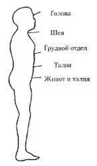 На другом конце тела находится таз, костная структура, охраняющая половые и выделительные органы. Шея и талия — основные переходы от одного центра к другому. Через них проходят нервы, сосуды, дыхательная и пищеварительная магистрали. На рисунке 8.5 отражены различные сегменты тела. Соединение между этими различными сегментами тела делает возможным сгибание и повороты. Амплитуда возможного движения между сегментами зависит от длины соединяющих их частей.