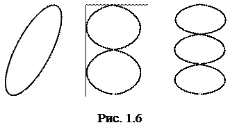 4.3. Изменяя частоту сигнала генератора, добиться получения устойчивых фигур Лиссажу разной формы, например, таких как на рис.1.6. Для трех-пяти фигур измерить по шкале звукового генератора частоту nх сигнала генератора. Частота исследуемого сигнала определяется как: nу = nх ´ число точек касания горизонтальной прямой / число точек касания вертикальной прямой (см. рис. 1.6). Результаты занести в табл. 1.2. Сделать вывод относительно nу.