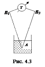 Используются термопары чаще всего для измерения высоких (или низких) температур. Для этого “горячий” спай помещают в среду, температуру Т которой хотят узнать (Т А = Т), а “холодный” спай - в среду с известной температурой Т В = Т О (например, в тающий лед). Измерив термо-ЭДС (термоток) и зная a, по формуле (4.1) легко вычислить Т. При измерениях удобно иметь предварительно проградуированную термопару. В этом случае нет необходимости в знании a. По измеренным ЭДС и Т непосредственно по графику e = f (D Т = Т - ТО) определяют D Т, а значит, и Т. Задача данной лабораторной работы состоит в том, чтобы получить градуировочную кривую. Градуировку термопары производят по той же схеме (рис. 4.2), что и при измерениях температуры, с той лишь разницей, что “горячий” спай здесь помещают в среду, температуру которой можно изменить и измерить независимым от термопары способом (обычным термометром). П р и м е ч а н и е. Очень часто ”холодный” спай оставляют при температуре окружающего воздуха (особенно при измерении температур в производственных условиях). В этом случае нет необходимости специально его создавать. Роль такого спая играет любой из контактов (В 1 или В2) проводника термопары (рис. 4.3) с измерительным прибором.