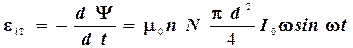 где d - диаметр катушки; I 0 - амплитудное значение тока; w - циклическая частота. ЭДС индукции, возникающая в катушке, определяется выражением