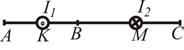 1. Определите индукцию магнитного поля, создаваемого зарядом q, движущимся со скоростью v, на расстоянии r от этого заряда. Радиус-вектор r образует со скоростью v угол α. 2. На расстоянии r = 10-9 м от траектории прямолинейно движущегося электрона максимальное значение магнитной индукции Bmax = 3, 2× 10-4 Тл. Определить скорость электрона. 3. Два электрона движутся в одном направлении по прямой. Скорости их соответственно равны v1 = 4000 км/с и v2 = 8000 км/с. Найти напряженность магнитного поля в точке, отстоящей от траектории на 2 мм, в момент времени, когда второй заряд приблизится к первому на расстоянии 2 мм. Взаимодействие зарядов не учитывать. 4. Найдите зависимость магнитной индукции B вокруг бесконечной заряженной нити от расстояния r от нити с линейной плотностью заряда р, если нить движется в продольном направлении со скоростью v. 5. Два прямолинейных длинных проводника расположены параллельно на расстоянии r друг от друга. По проводникам текут токи I 1= I2 = I в противоположных направлениях. Найти модуль и направление индукции магнитного поля в точке, находящейся на расстоянии r от каждого проводника. 6. По двум бесконечно длинным прямолинейным проводникам, расположенным параллельно друг другу на расстоянии 10 см, текут токи в одном направлении. Напряженность поля в точке, удаленной на 10 см от каждого проводника, равна 16, 33 А/м. По одному из проводников течет ток силой 0, 5 А. Определить силу тока, текущего по другому проводнику. Решение пояснить рисунком. 7. По двум прямым параллельным длинным проводникам текут токи I 1 = 10А и I 2 = 2 А в одном направлении. Расстояние между проводниками r = 20 см. Как расположена линия, в каждой точке которой индукция магнитного поля равна нулю? На каком расстоянии от первого проводника она находится? 8. Найдите напряженность магнитного поля H, вызванного токами I 1 = 20 А и I 2 = 30 А в точках А, В, С. Расстояния АК = 2см, КВ = 4 см, МС = 3 см. Токи текут в противоположную сторону. Расстояние между проводниками КМ = 10 см (рис.4).
