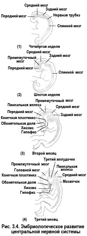 Расширяющийся и скрученный паттерн роста на вершине нервной трубки организован вокруг конечной пластинки (lamina terminalis). Конечная пластинка образует переднюю стенку третьего желудочка (см. рис. 3.2). Это место действует как естественная точка опоры (фулькрум) для роста и развития центральной нервной системы, и оно остаётся местом, где первичное дыхание центральной нервной системы выражается в течение жизни, пока нет никаких напряжённых влияний, которые изменяют это движение.