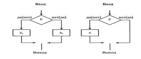 Определение. Алгоритм, содержащий хотя бы одно условие, в результате которого обеспечивается переход на один из двух возможных шагов, называется разветвляющимся. Блок-схемы базовых структур. Развилка полная Развилка неполная