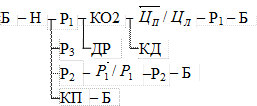 Быстрый отвод осуществляется при установке распределителей Р1 в правом и Р2 в среднем положениях и жидкость будет подаваться через следующие аппараты: