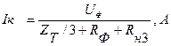 Расчет выполняется исходя из условия (6.2) и проверяется на выполнение условия (6.1). 6.4.5. Расчет величины тока короткого замыкания ( Iк ). Значение Iк зависит от фазного напряжения сети Uф и сопротивлений цепи, в том числе, от полных сопротивлений трансформатора ZТ и петли (контура) фазный проводник – нулевой защитный проводник (петли фаза – нуль, Zп) и может быть рассчитано по формуле для вычисления действительного значения (модуля) тока короткого замыкания:
