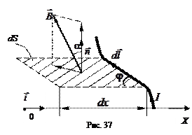 т. е. площади, пересекаемой элементом тока при его перемещении. Направление векторного произведения по правилу правого винта совпадает с направлением нормали к площадке dS (рис. 37). Таким образом, (2.30) можно записать в виде