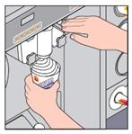 Добавьте наполнитель Держа стаканчик под раздаточным автоматом наполнителя, передвиньте рукоятку – один раз в одну сторону или два раза – в одну сторону, а затем в другую, чтобы добавить нужное количество наполнителя. Ø См. раздел «Наполнители Макфлурри».