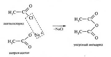 2. В промышленном масштабе ангидриды получают взаимодействием галогенангидридов с безводными солями карбоновых кислот: