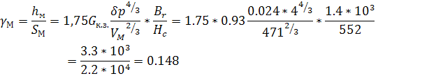 Величина коэффициента заполнения kз.м зависит от числа полюсов 2p. Можно предварительно принять при 2p=8 величину kз.м=0, 65. При этом следует учитывать, что пространство магнита должно быть достаточным для размещения намагничивающей обмотки. Величина При выборе величины Д.С. Уриновским применительно к магнитной системе явнополюсной конструкции даются следующие рекомендации по высоте магнита
