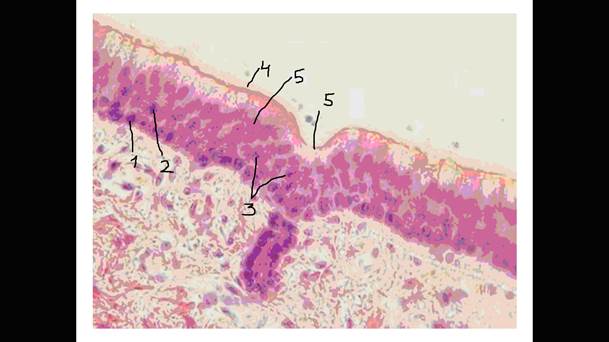 Полоска на апикальной поверхности клеток, образованная ресничками Многорядный мерцательный эпителий трахеи(большое увеличение)