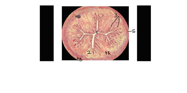 А-однослойный призматический эпителий А)реснитчатые клетки Б)железистые клетки 2б- собственная пластинка: рыхлая волокнистая соединительная ткань(децидуальные клетки) Маточные железы Матка-поперечный разрез