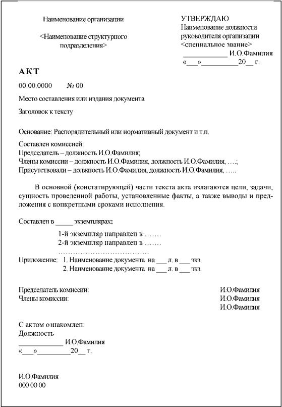 Рис. 22. Структура акта на общем бланке с угловым расположением реквизитов заголовочной части