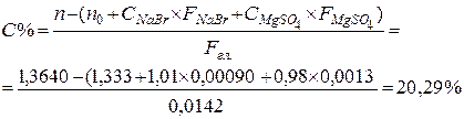 Глюкоза: метод рефрактометрии. Fгл.=0, 0142 FNaBr=0, 00090 n= 1, 3640 FMgSO=0, 00130