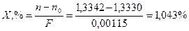 КОЛИЧЕСТВЕННОЕ ОПРЕДЕЛЕНИЕ Кальция хлорид (Рефрактометрически). Метод основан на способности исследуемого вещества изменять показатель преломления света. Испытуемый раствор и очищенную воду выдержали 30 минут рядом с рефрактометром для уравнивания температуры. После этого нанесли 3 капли воды на призму рефрактометра и определили показатель преломления. Затем призму тщательно протерли, нанесли 3 капли испытуемого раствора и определили показатель преломления. Кальция хлорид n=1, 3342 Вода очищенная n0=1, 3330