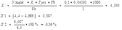 1 мл - 0, 0044 мл На титрование ушел 0, 1мл 0, 1М раствора натрия гидроксида, соответственно содержание исследуемого вещества в граммах равно: