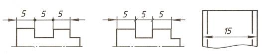 Размерные линии предпочтительно наносить вне контура изображения. Допускается проводить размерные линии непосредственно к линиям видимого контура, осевым, центровым и другим линиям. Необходимо избегать пересечения размерных и выносных линий. Не допускается использовать линии контура, осевые, центровые и выносные линии в качестве размерных линий. Про недостатке места для стрелок на размерных линиях, расположенных цепочкой, стрелки допускается заменять засечками, наносимыми под углом 450 к размерным линиям, или четко наносимыми точками.