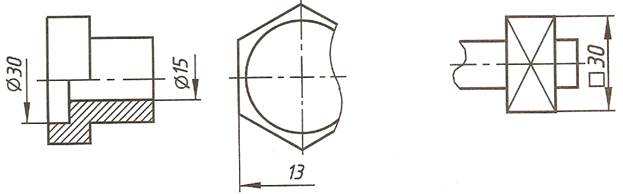 Размеры нескольких одинаковых элементов изделия, как правило, наносятся один раз с указанием на полке линии-выноски количества этих элементов. Размеры небольших конических и пирамидальных срезов (фасок) не деталях проставляются, как показано на рисунке.