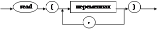 Связь программы с внешним миром осуществляется с помощью операторов ввода и вывода. Эти операторы представляют собой вызовы стандартных процедур ввода и вывода. Процедуры ввода read и readLn позволяют инициализировать переменные значениями, вводимыми с клавиатуры. Синтаксическая диаграмма процедуры read: