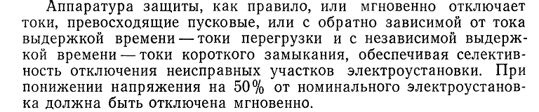 131 Дайте квалификацию аппаратуры управления и защиты. В зависимости от природы явления, которое положено в основу действия аппаратов, их можно разделить на: аппараты ручного управления (рубильники, переключатели, выключатели, контроллеры), действие которых происходит в результате механического воздействия на них внешних сил; электромагнитные аппараты (магнитные пускатели, контакторы, электромагнитные реле), работа которых основана на электромагнитных силах, возникающих при работе аппарата. В зависимости от выполняемых функций аппараты подразделяют на: коммутационные, предназначенные для включения и отключения различных цепей.Коммутационная аппаратура может быть неавтоматического управления (рубильники, переключатели, магнитные пускатели) и автоматического управления (реле, контакторы, автоматические выключатели); токоограничивающие и пускорегулирующие (реостаты, контролеры); аппараты защиты электрических цепей (реле защиты, предохранители). Аппаратура может работать в различных режимах: длительно, кратковременно или в условиях повторно-кратковременной нагрузки. Аппараты различаются также по следующим признакам: номинальному току и напряжению; числу полюсов (фаз); роду тока (постоянный или переменный); виду присоединения (с передним или задним присоединением проводов); способу защиты от воздействия окружающей среды (открытое исполнение, защищенное, пылезащищенное) и другим признакам. 132 Перечислите виды защиты которые должны иметь любой электропривод Электроприводы должны иметь следующие виды защиты: - от внутренних коротких замыканий, связанных с отказом полупроводниковых приборов; - от внешних коротких замыканий и режима опрокидывания инвертора; - от перегрузок преобразователя и двигателя; - от превышения скорости двигателя или обрыва обратной связи по скорости (в электроприводах с регулированием скорости); - от превышения или исчезновения входного напряжения и напряжения сетей, питающих вспомогательные цепи; - от исчезновения тока в цепи возбуждения двигателя; - от превышения тока в цепи возбуждения двигателя; - от перенапряжения; - от исчезновения принудительного охлаждения (при его наличии). Аппаратура защиты от внутренних и внешних замыканий должна обеспечивать селективность срабатывания. По согласованию с заказчиком перечень видов защиты может быть дополнен или сокращен