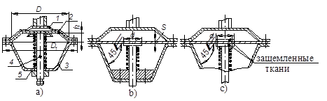 а) с выпуклой диафрагмой, h – выпуклость в) с плоской без защемления диафрагмой с) с защемленной диафрагмой Исходные данные: Q, p – давление воздуха, t – время срабатывания, L – ход штока (необходимый). Обычно: S =4…10 мм, D =130…180 мм