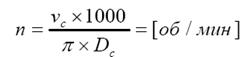 Скоростью резания v называется величина перемещения заготовки относительно режущей кромки инструмента в направлении главного движения за единицу времени. Если известны скорость резания, допускаемая режущими свойствами инструмента, и диаметр заготовки, то можно определить требуемую частоту вращения шпинделя (и заготовки).