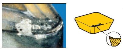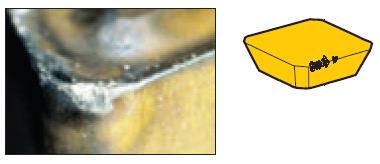 Рис. 21.Выкрашивание. Выкрашивание режущей кромки, ведущее к ухудшению качества обработанной поверхности и чрезмерному износу по задней поверхности.