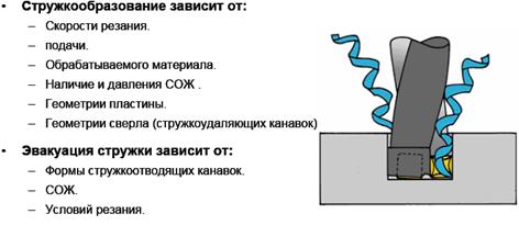 Рис. 37 Стружкообразование при сверлении. Типичные проблемы, возникающие при сверлении отверстий.