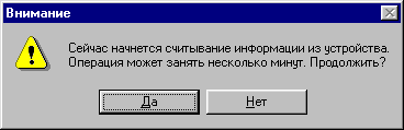 Рис. 2 Для отказа от считывания данных следует нажать кнопку «Нет», для продолжения - нажать кнопку «Да», при этом появится окно «Выбор порта» (Рис. 3).