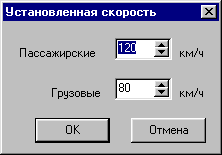 Рис. 12 Задание установленной скорости на выделенном участке Чтобы задать вид шпал (новые – после 1996 г.в./старые – до 1996 г.в.) на выделенном участке необходимо выбрать пункт главного меню «Свойства участка – Шпалы» или пункт контекстного меню «Шпалы» или нажать кнопку